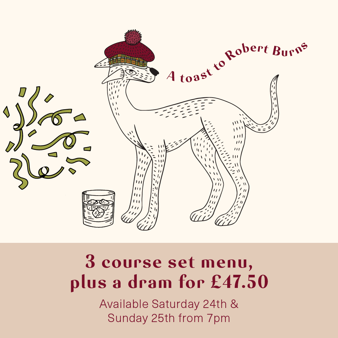 Raise a glass to Robert Burns on 24th and 25th January with our 3 course Burns Night set menu inclusive of a 15YO dram of Glenfiddich for £47.50pp.