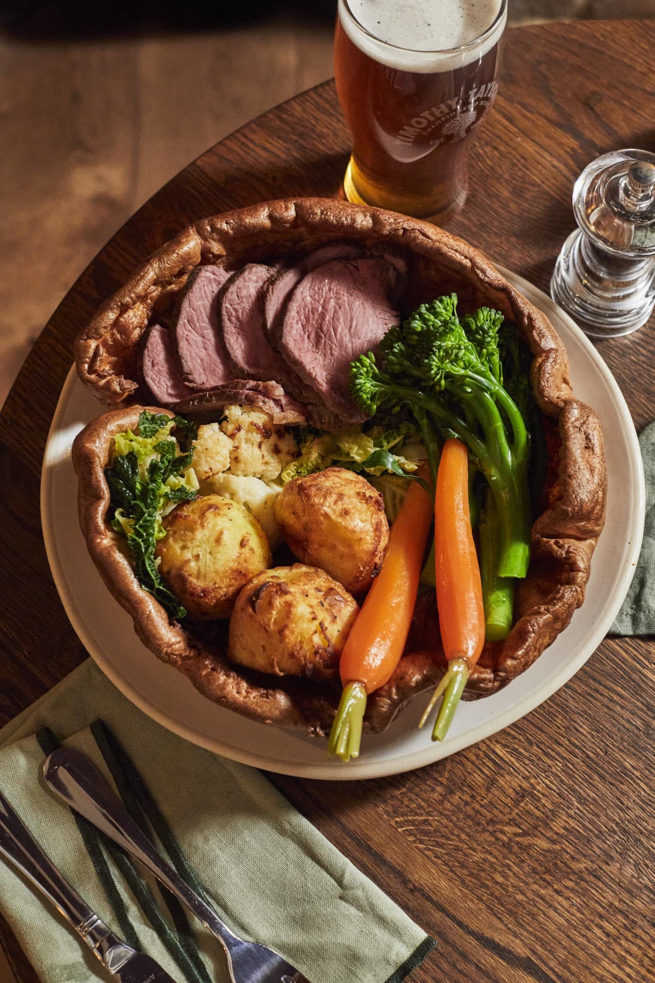 Join us every Sunday in February for your perfect roast in a giant Yorkshire pudding and a free pint of Timothy Taylor’s Landlord.